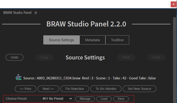 - In Premiere Pro : the Source Settings Tab of the BRAW Studio Panel (Premiere Pro)