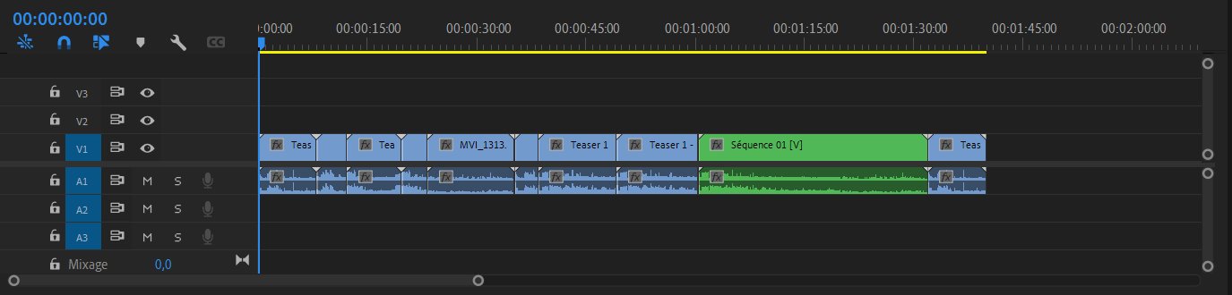 Disclaimer : the simpler is the better. To avoid any conversion issue between the two software, we first need to strip our timeline of all complex features. First, let's start by duplicating the timeline you want to transfer. That way, you will not lose the current state of your work even if an error occurs in the process. Then, you will try to make your duplicated timeline as simple as possible, that includes :